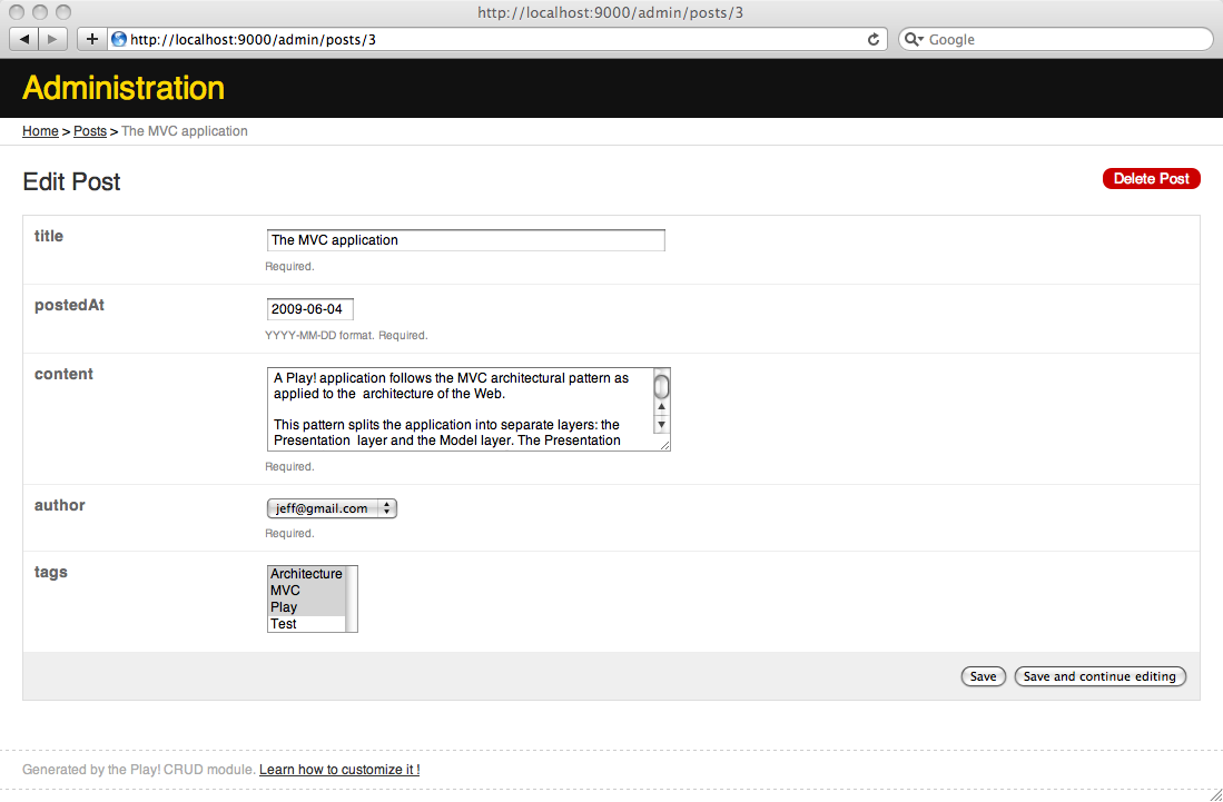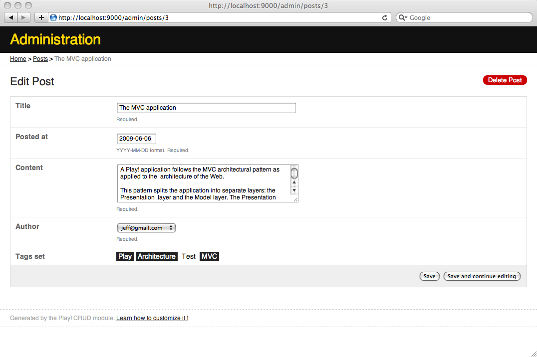 $ play crud:ov --template Posts/show