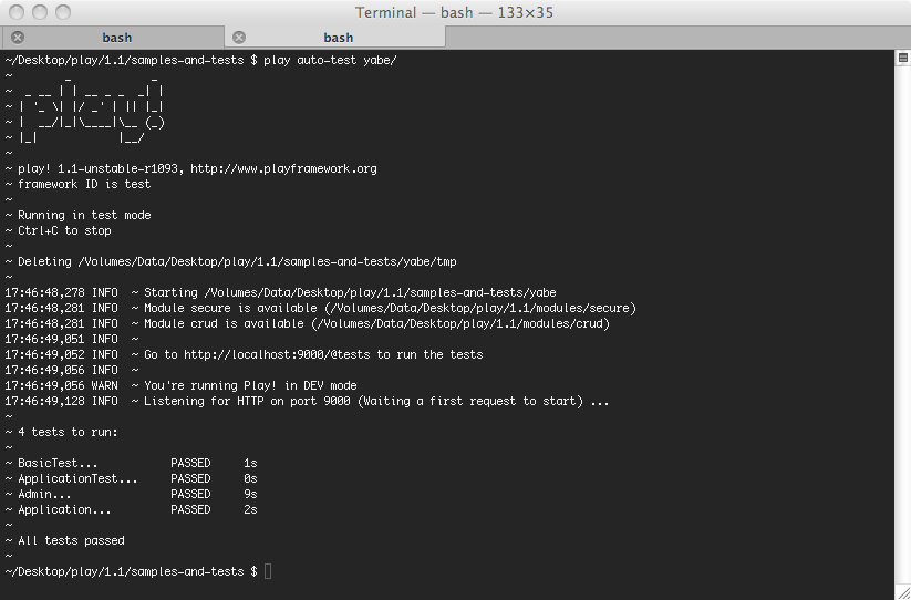 As you know, the Play test runner requires a browser to run application tests. This is because of the Selenium test support, which makes it possible to really test your application running in a browser.