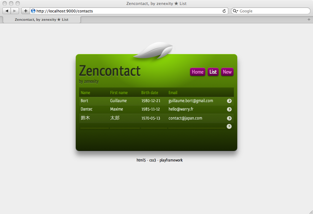 A new sample, that is a port of a Wicket-based contact management application. There is also a Scala version of this application available in the Scala module package, for those interested.