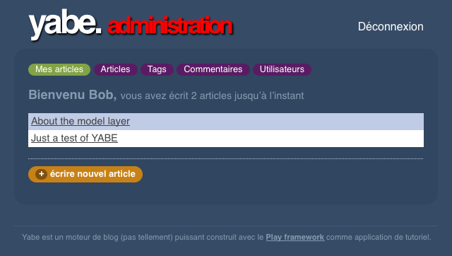 The ‘Yet Another Blog Engine’ admin interface in Dutch (above) and French (below).