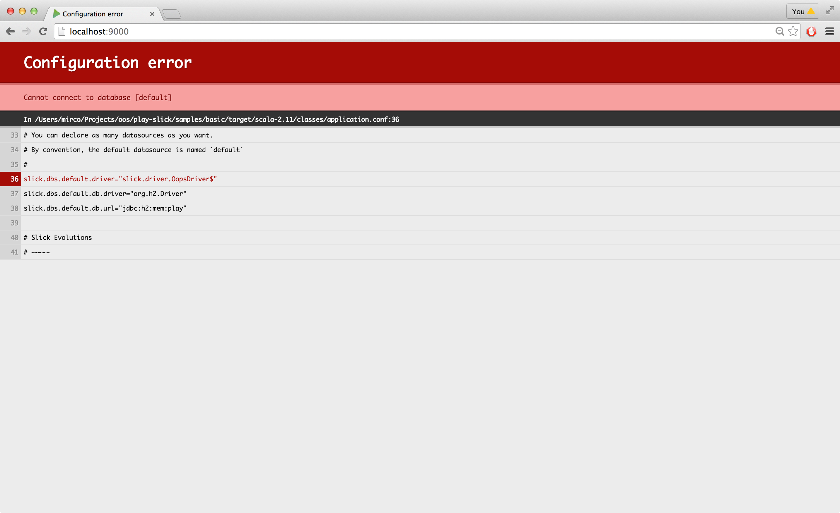 Note: Your application will be started only if you provide a valid Slick configuration.
