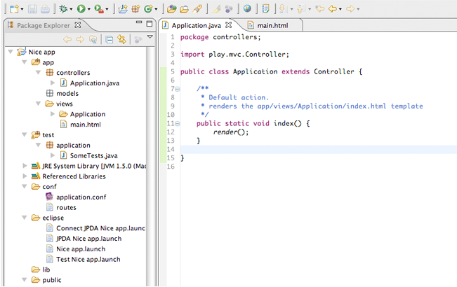 更に、Play には HTML ビューテンプレート、 application.conf そして routes ファイル用のエディタを提供する Eclipse プラグインが含まれています。