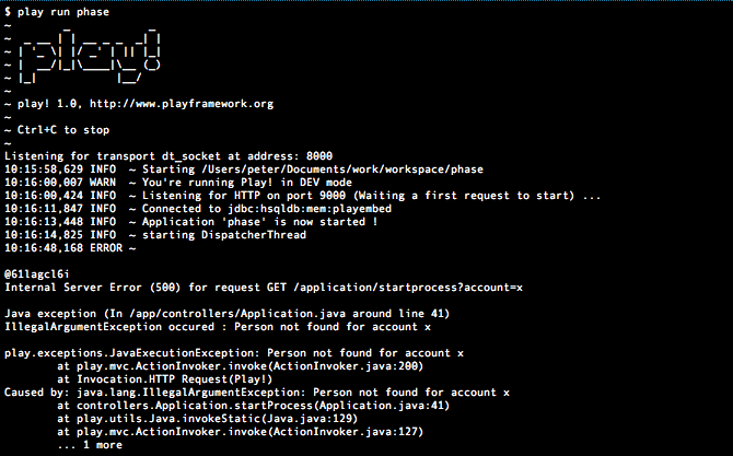 フレームワークそれ自身の中に web アプリケーションにおいて達成したい利便性が含まれているため、Play フレームワークは違います。例えば、ブラウザに表示されるこのフレームワークのドキュメントやエラーメッセージのような web インタフェースは、ただただ有用です。同様に、エラーが発生した際は、ページいっぱいの無関係な情報やスタックトレースが出力されることを避け、web デベロッパのための、より注目すべき、より有用な情報を残します。