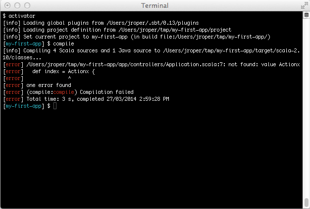 [info] Set current project to my-first-app (in build file:/Users/jroper/tmp/my-first-app/)